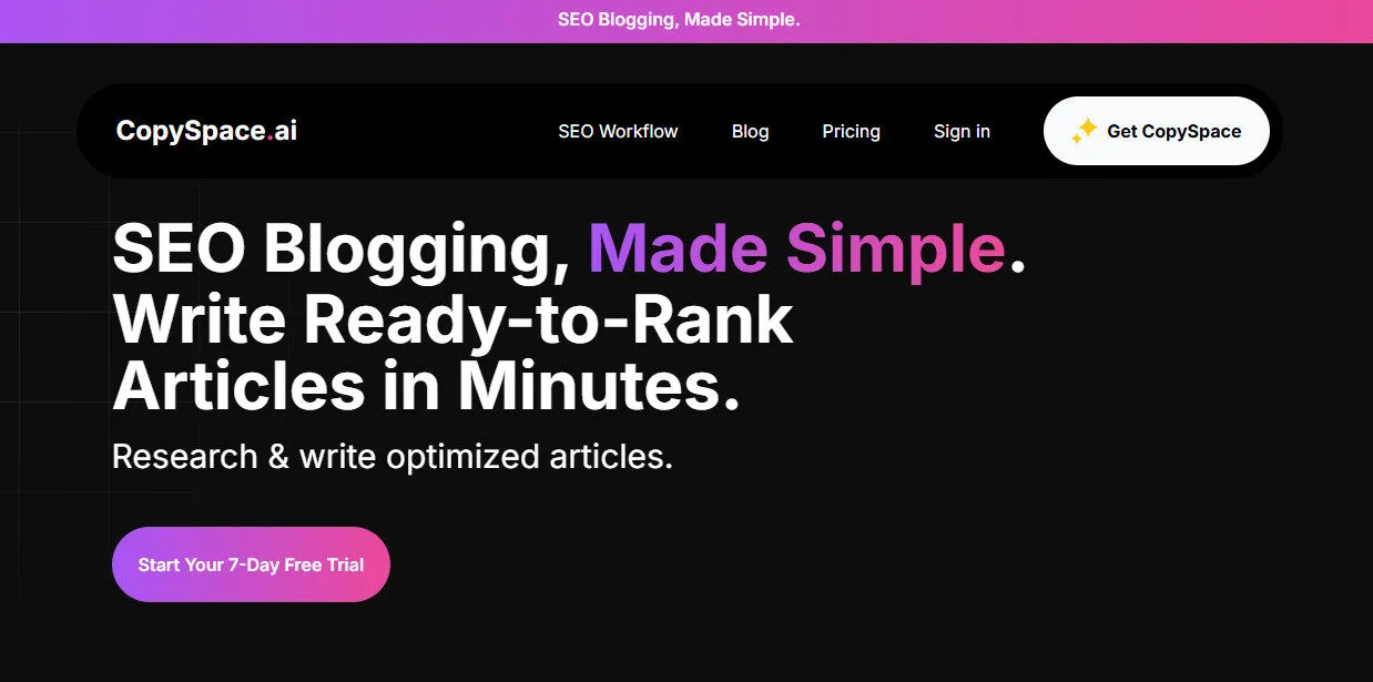 Copyspace AI is built for content producers who need fast, SEO-ready long-form output with live optimization feedback — without managing a multi-tool content workflow.
