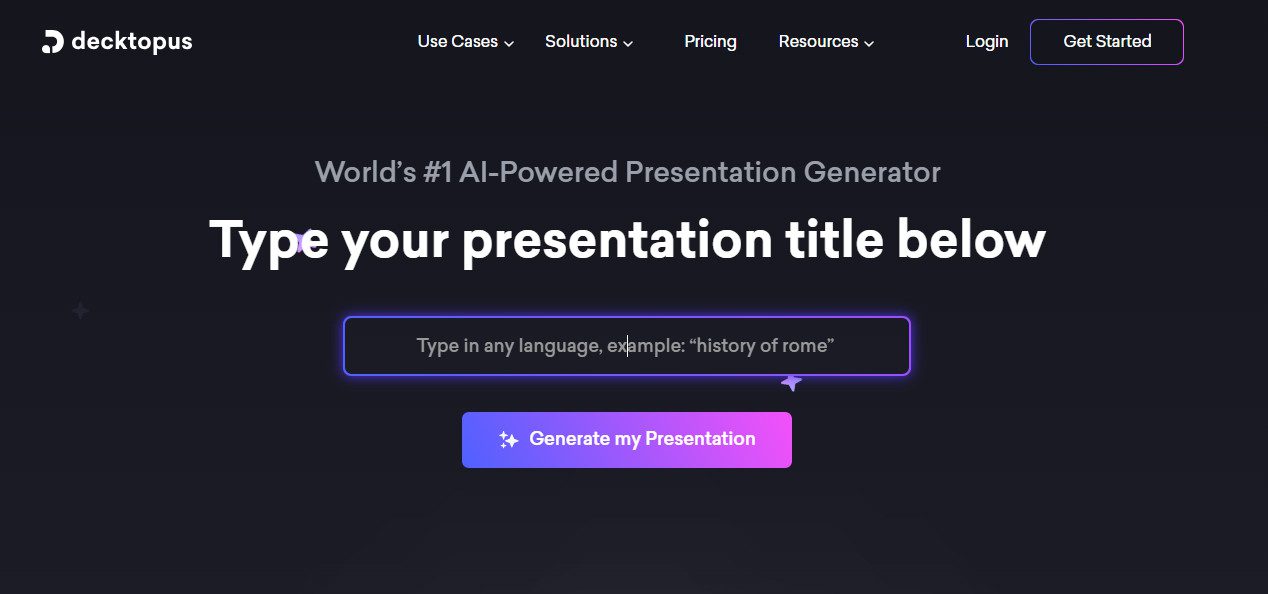 • AI Presentation Generation — Type a prompt and Decktopus creates a full deck with slides, copy, and layouts automatically, saving you hours of manual work.