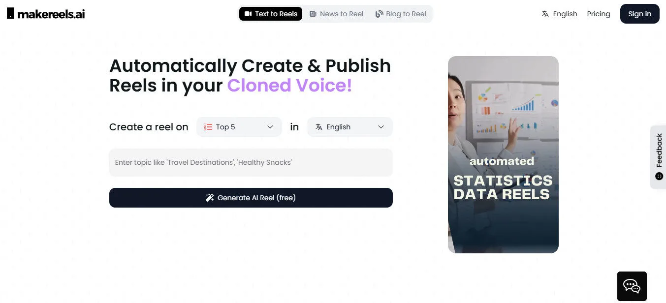 • Personal Brand Builders and Solo Creators — Clone your voice on the Automated Reels plan and have every future reel narrated in your voice automatically, maintaining a consistent identity at scale without recording each video.