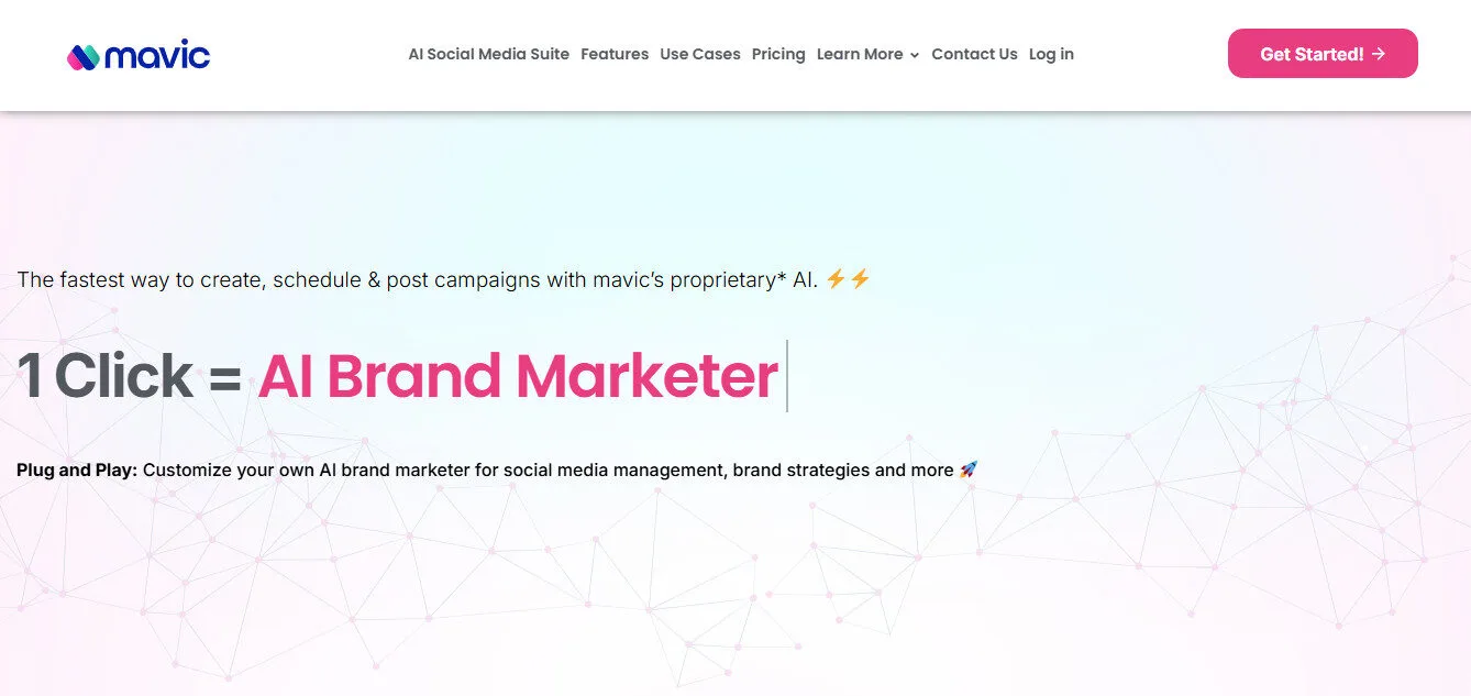 • Brand-Trained AI Marketing Assistant — Train Mavic's AI on your specific brand data: product descriptions, audience personas, tone of voice, color schemes, and competitive positioning; every social post, image, blog, and campaign idea generated runs on your brand context — not generic AI output.