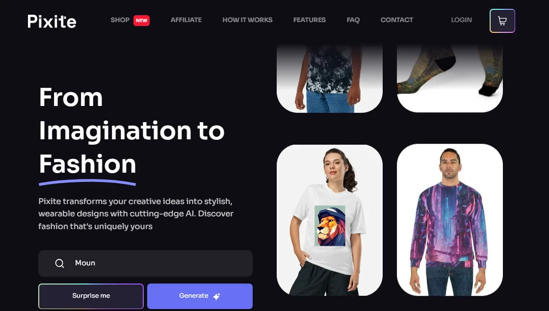 Users can input text descriptions, and Pixite AI intelligent algorithms bring those ideas to life as customized clothing, ready for production and delivery.