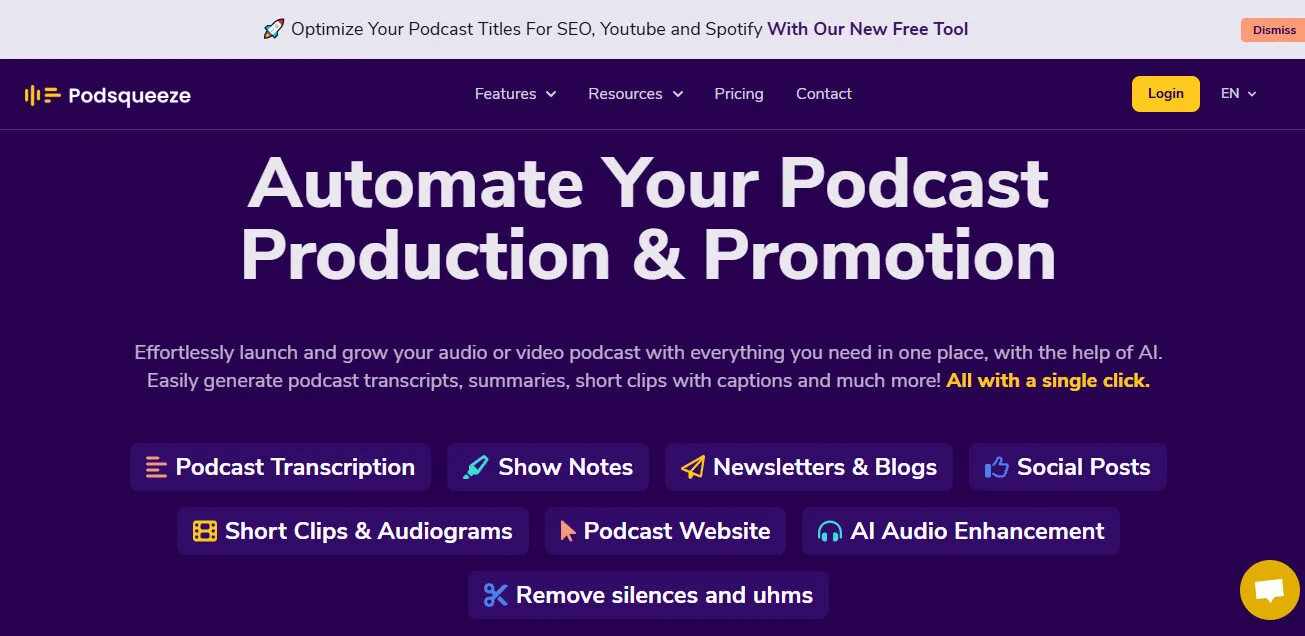 Podsqueeze AI tool – Podsqueeze is an all-in-one podcast automation platform trusted by 70,000+ content creators, podcast managers, producers, and agencies worldwide.
