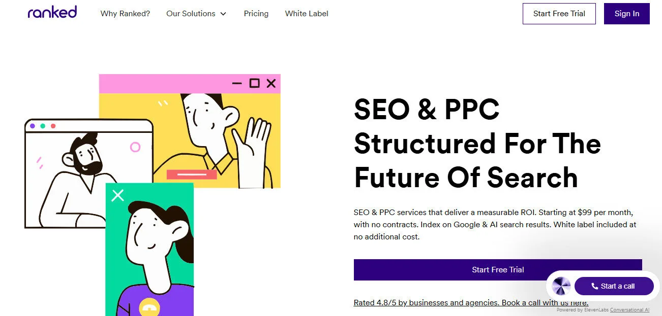 Ranked AI offers a free trial to start, with month-to-month billing and no contracts on every plan — a genuine trust signal in an industry known for 6–12 month lock-in agreements. A 20% discount applies when paying upfront for the year, bringing the Standard plan to approximately $79.20/month.