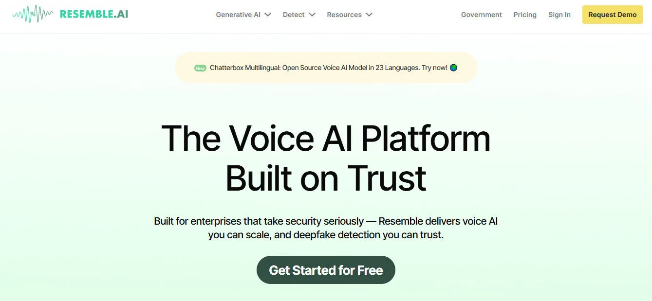 Resemble AI occupies a unique position in the AI audio market: it is the only platform that simultaneously generates synthetic voices, embeds invisible provenance watermarks at the moment of creation, and detects deepfakes across audio, image, and video — all under one unified infrastructure.