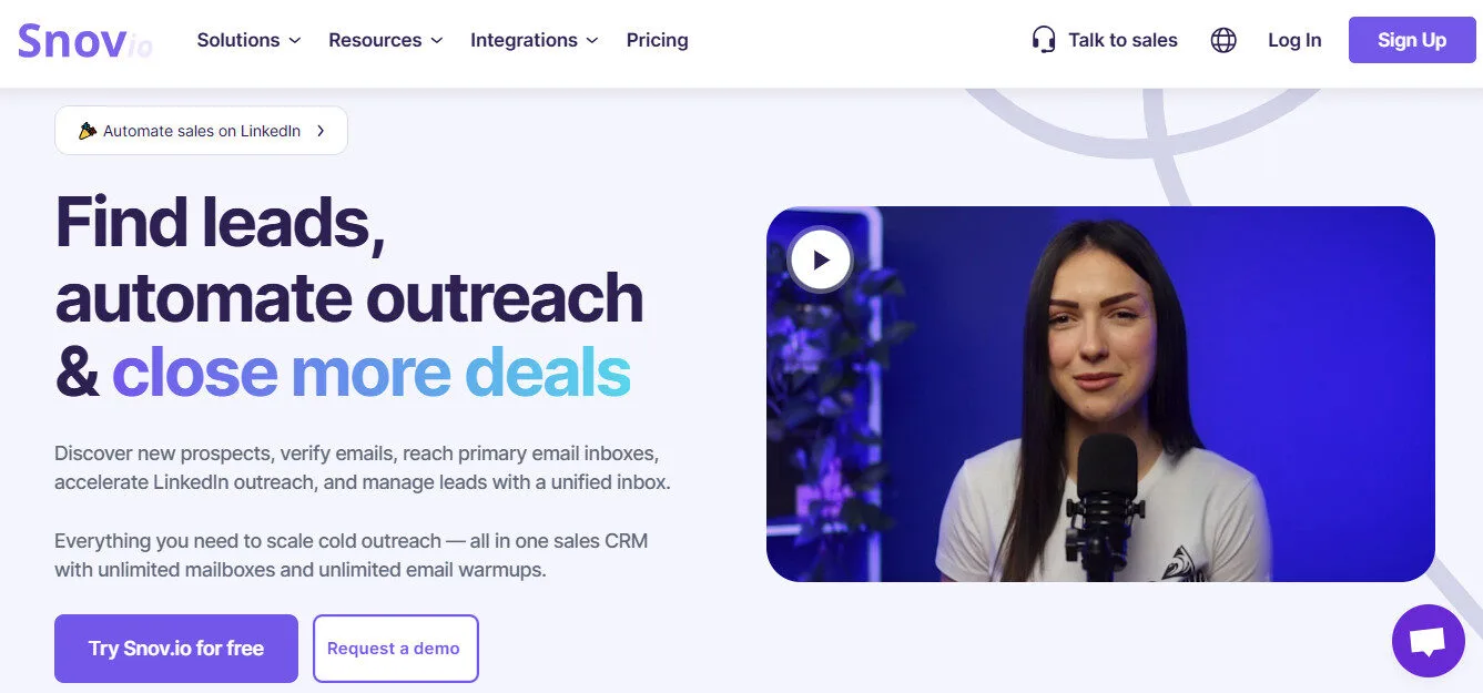 Snov.io stands out by combining every major component of the outbound sales workflow — data, verification, infrastructure, campaigns, LinkedIn, deliverability, AI, and CRM — into one platform that starts free and scales without switching tools.