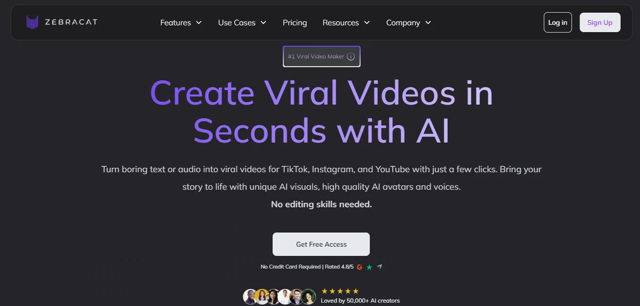 Zebracat AI is an AI-powered video creation platform that allows users to generate fully edited, viral-ready videos from text prompts, written scripts, audio inputs, or blog posts in minutes.
