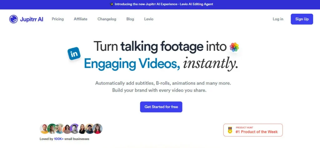 Jupitrr AI is an AI-powered video editing platform that automatically transforms uploaded talking-head videos into polished, B-roll-enhanced social clips. It uses word-level transcript-based B-roll assignment from 13.8M+ licensed iStock assets (Getty Images), combined with auto-generated subtitles (50+ languages), AI emojis, AI background music, hook text highlighting, and video transitions. Used by creators in 20+ countries, it is rated 4.8/5 on Product Hunt and 4.39/5 from 212 AppSumo users. Plans start at $10.80/month (annual billing) with a free plan available for 3 videos/month.